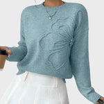 Denne strik føles som den første varme morgen efter en lang vinter – blød, indbydende og fuld af stille skønhed. Blomsterkonturen stiger blidt op fra stoffet og forestiller en blomst, der synes levende i sin stilhed. Indhyllet i denne strejke føler du en blid varme – varm, oprigtig og umiskendeligt feminin.